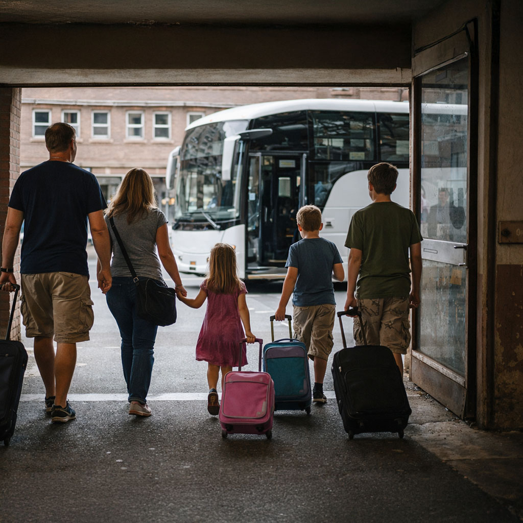 Families travelling with luggage